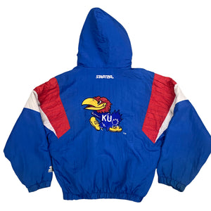 Vintage 1990s University of Kansas KU Jayhawks Kangaroo Style Pullover Starter Jacket Puffer - Size Small